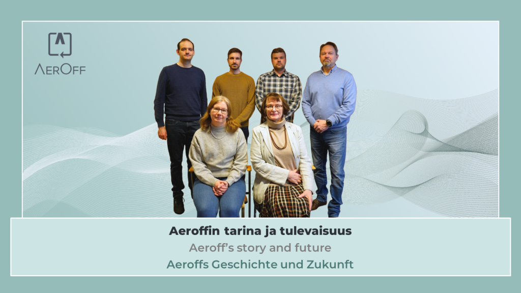 Die Erfinderin Pirkko Pihlajamaa erzählt von der Geschichte Aeroffs: „Das Forschungsprojekt, in dem die erste AerOff-Lösung entstand, wurde von führenden finnischen Metallunternehmen gemeinsam mit der Hochschule Tampere, dem VTT und dem Institut für Arbeitsmedizin initiiert. Das Projekt führte schließlich zu der Idee der AerOff-Lösung.“