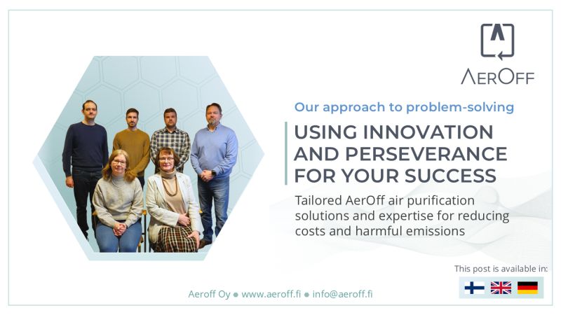 Aeroff ist aus einem Forschungsprojekt entstanden, in dem ein neuartiges Verfahren entwickelt wurde, um Aerosole effektiv aus der Luft abzuscheiden. Damit haben die Erfinder eine Lösung für ein Problem gefunden, das schon lange bekannt war, bis dahin aber nicht effektiv und finanziell nachhaltig gelöst werden konnte.