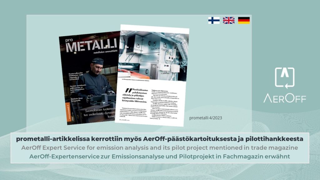 Die finnische Fachzeitschrift der Metallbranche prometalli veröffentlichte Ende letzten Jahres einen Artikel unter anderem über den AerOff-Expertenservice zur Analyse von Emissionen. Wie das Magazin berichtete, führte Aeroff den Service am Valmet-Standort Jyväskylä erstmalig durch.